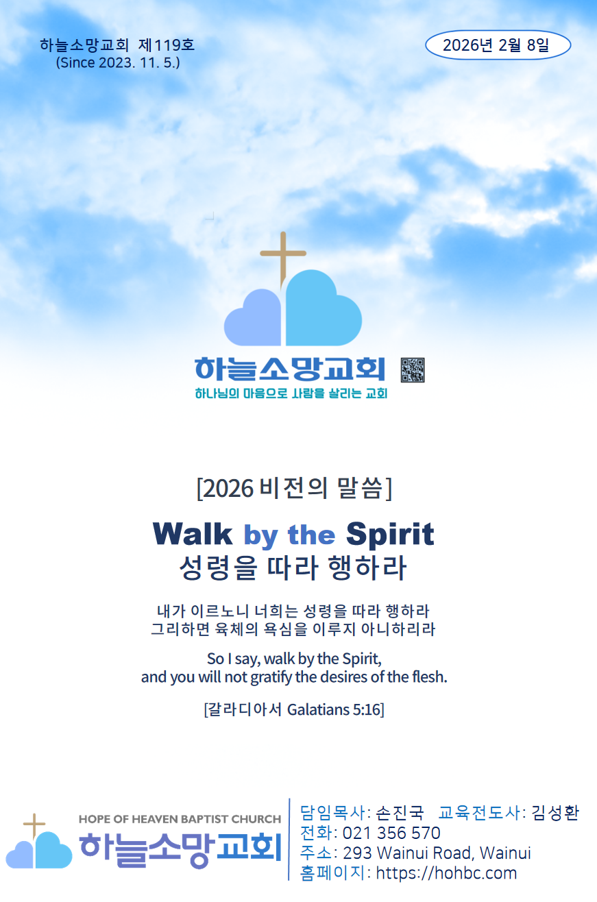 Hope of Heaven Baptist Church 하늘소망교회(담임 손진국 목사)는 뉴질랜드 오클랜드 북부 실버데일에 세워진 한인교회로 '하나님의 마음으로 사람을 살리는 교회'입니다.