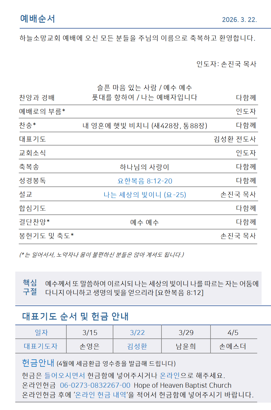 | 2026년 3월 15일 주보 (제 124호) (1) | 2026.03.14 |