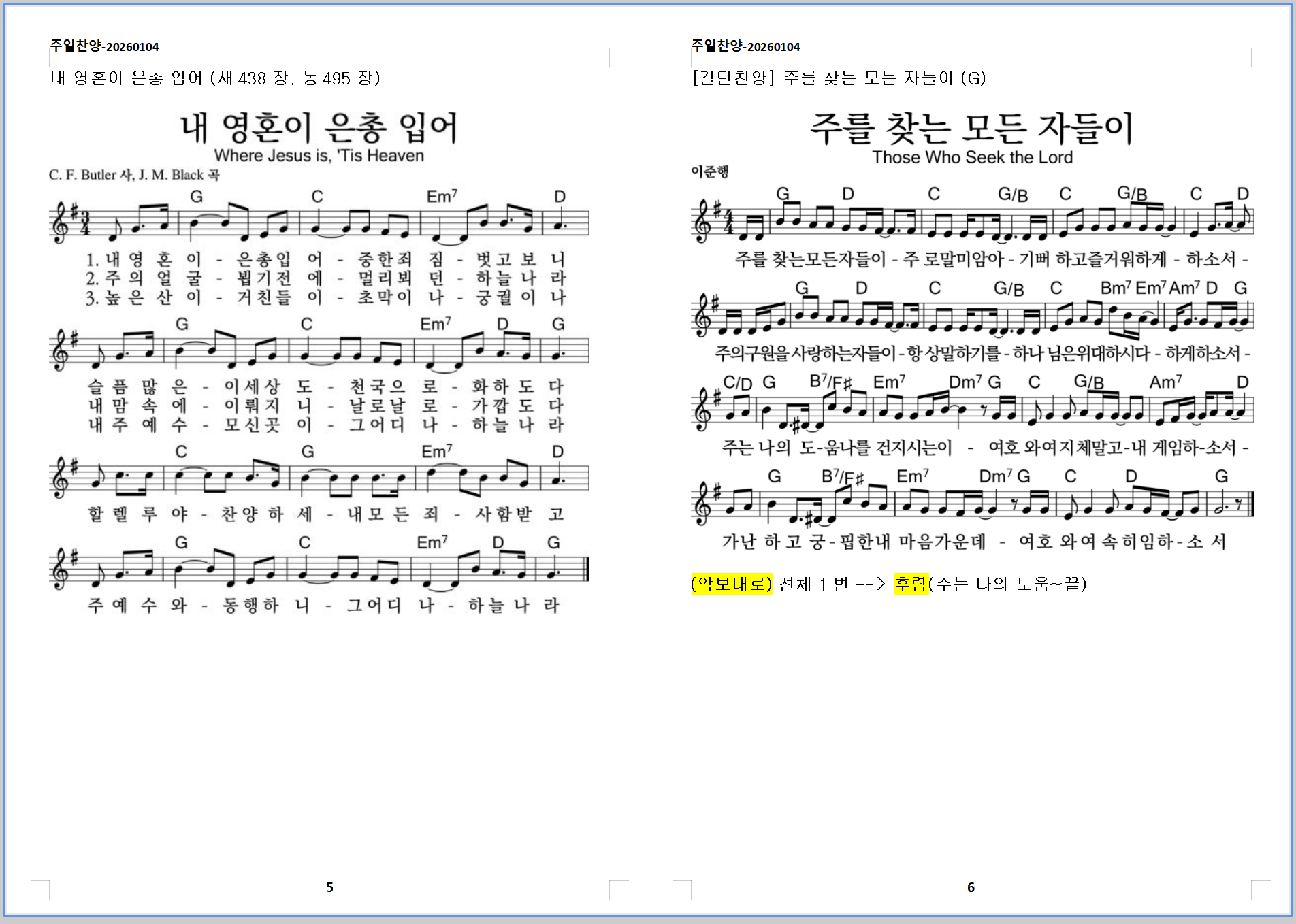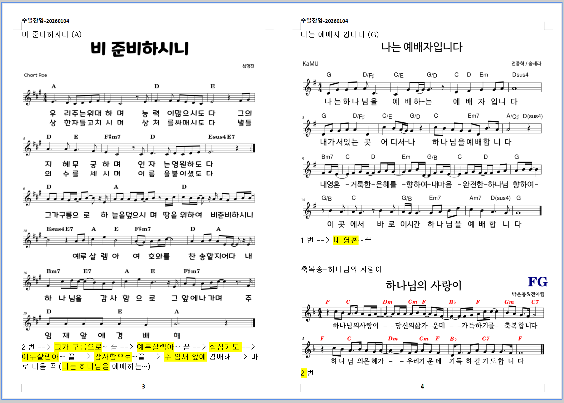 2026. 1. 4. 하늘소망교회 주일예배 찬양 콘티