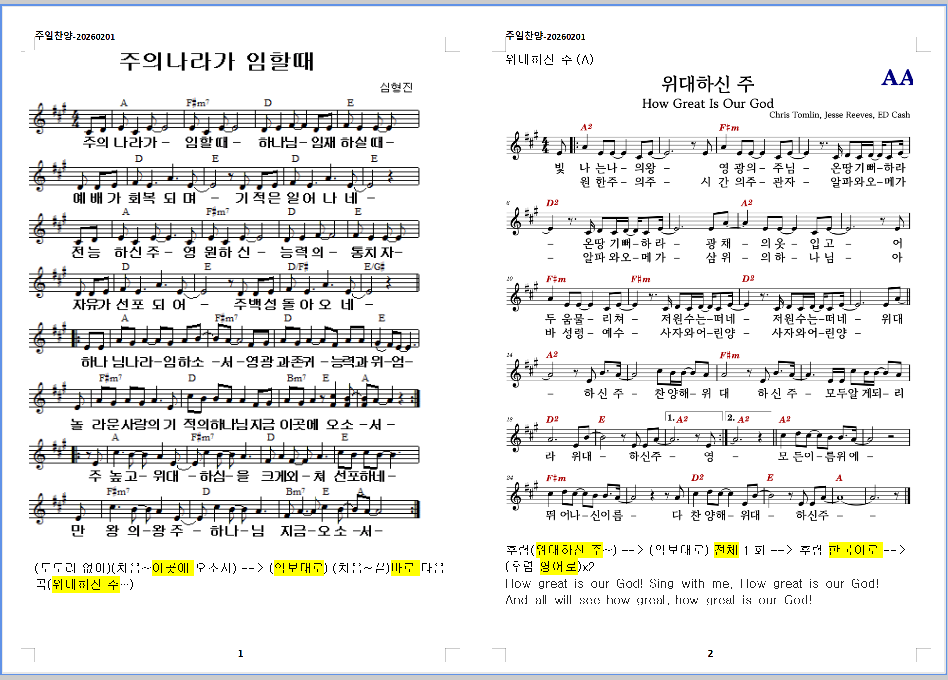사역 Works/찬양콘티 Praise setlist