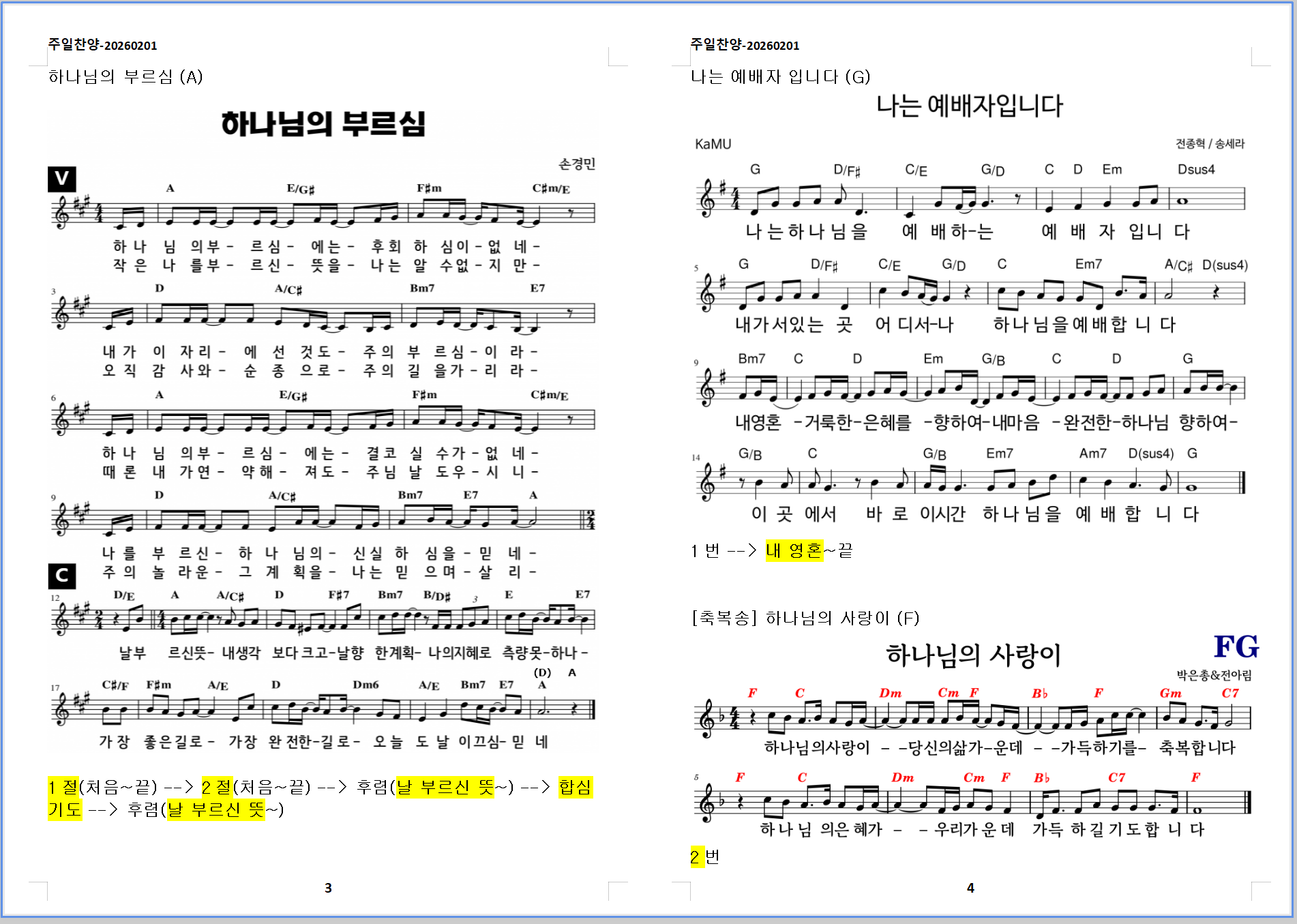 2026. 2. 1. 하늘소망교회 주일예배 찬양 콘티