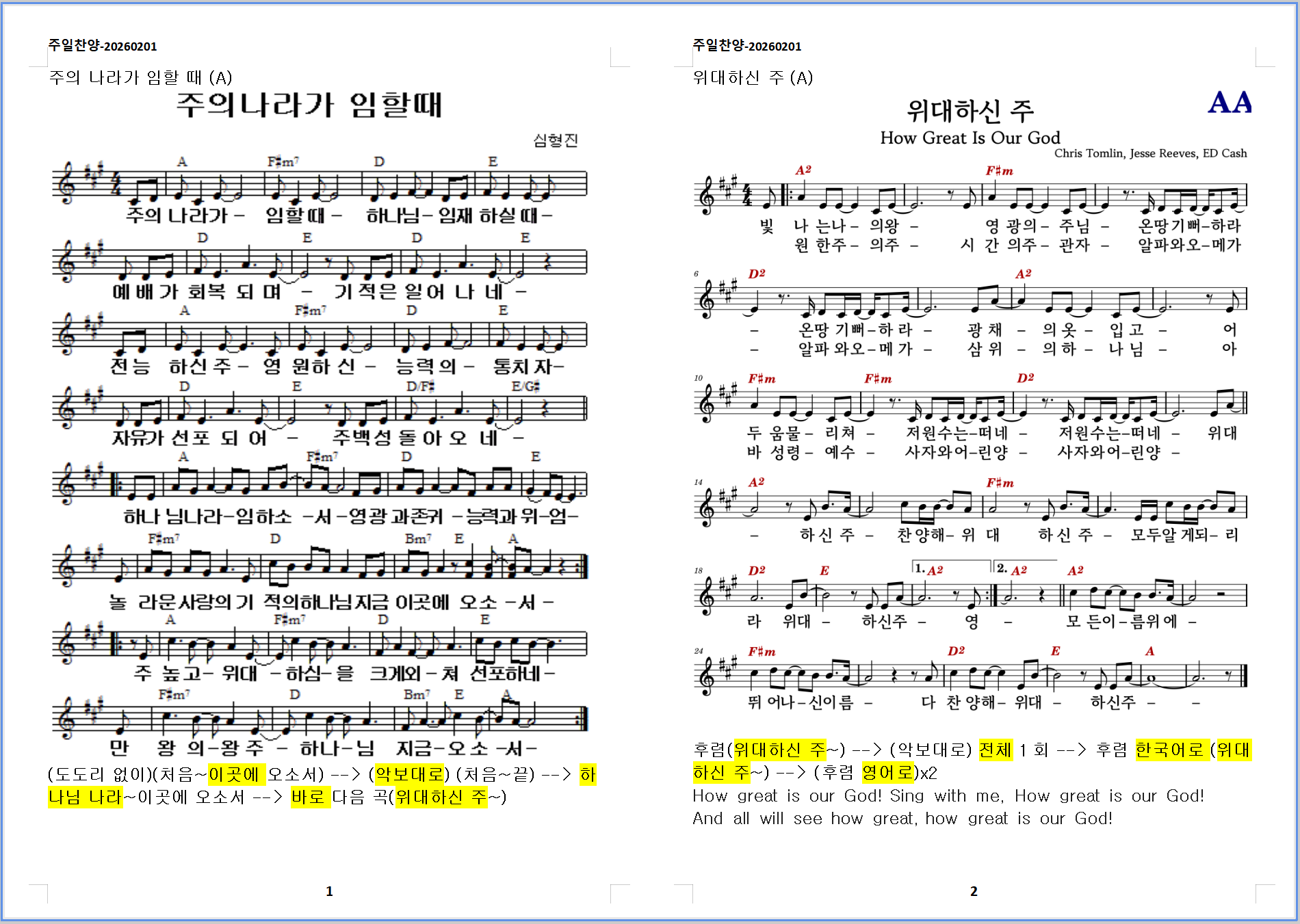| 2026. 2. 8. 하늘소망교회 주일예배 찬양 콘티 (0) | 2026.02.03 |