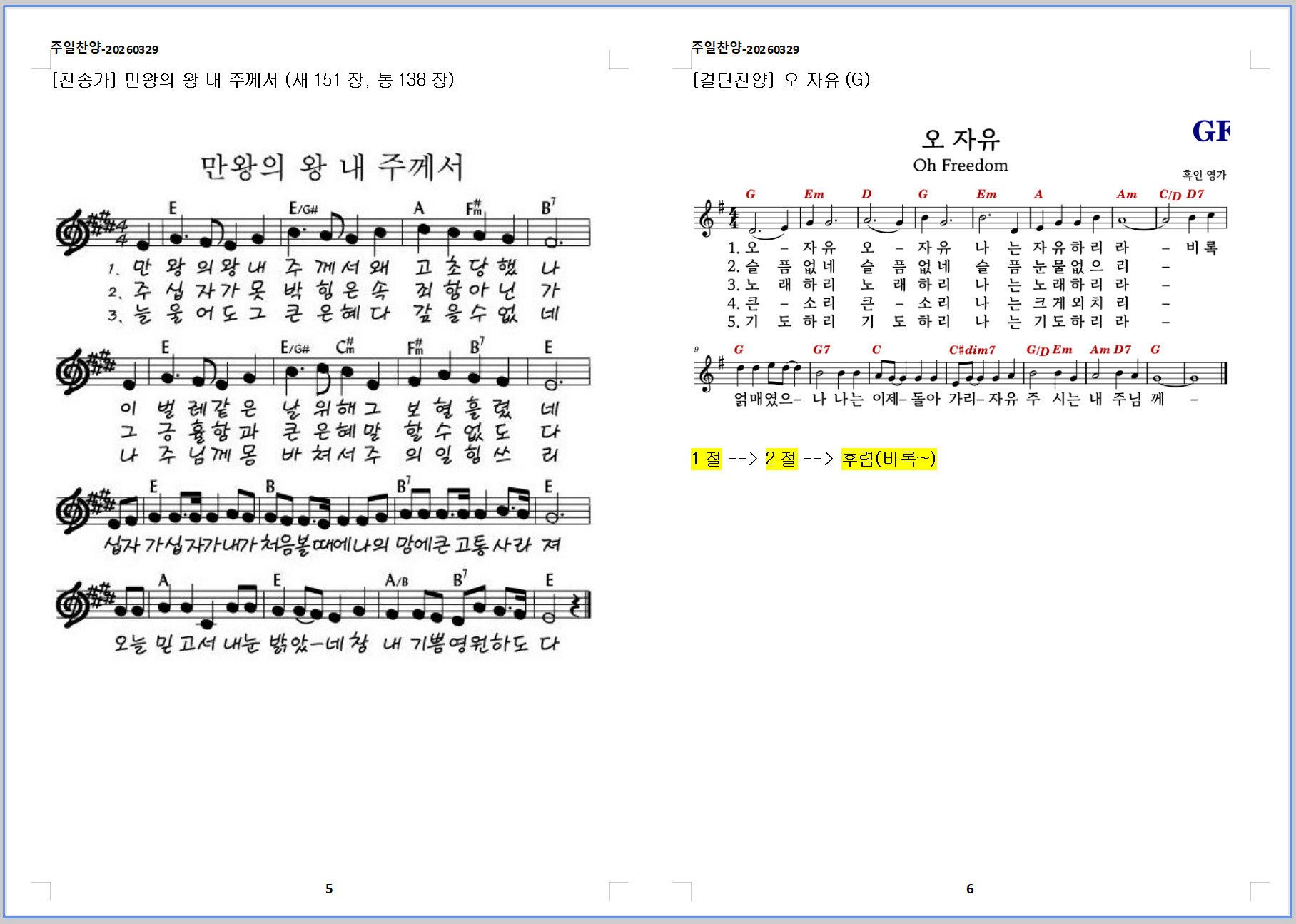 | 2026. 3. 8. 하늘소망교회 주일예배 찬양 콘티 (0) | 2026.03.03 |