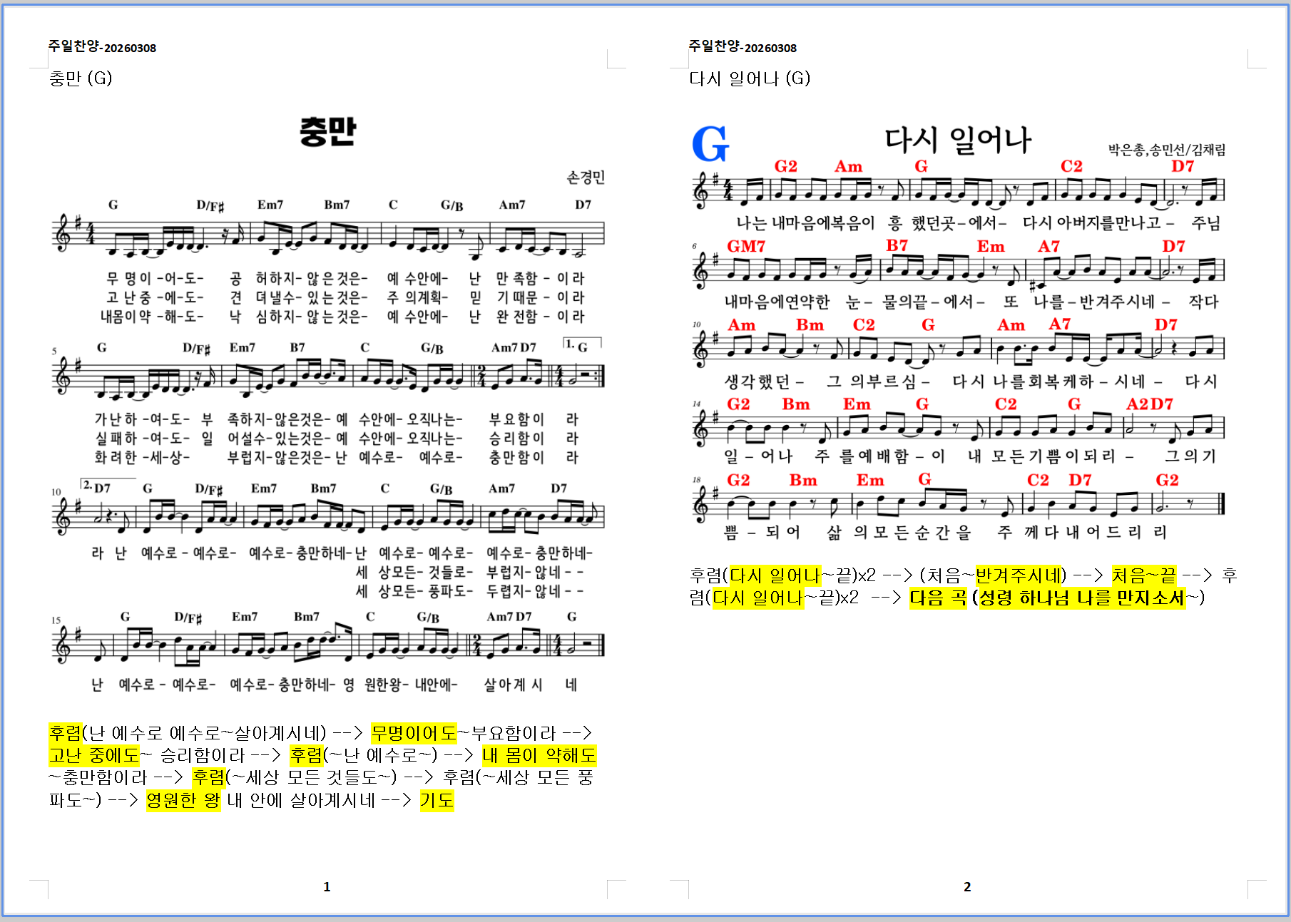 2026. 3. 8. 하늘소망교회 주일예배 찬양 콘티