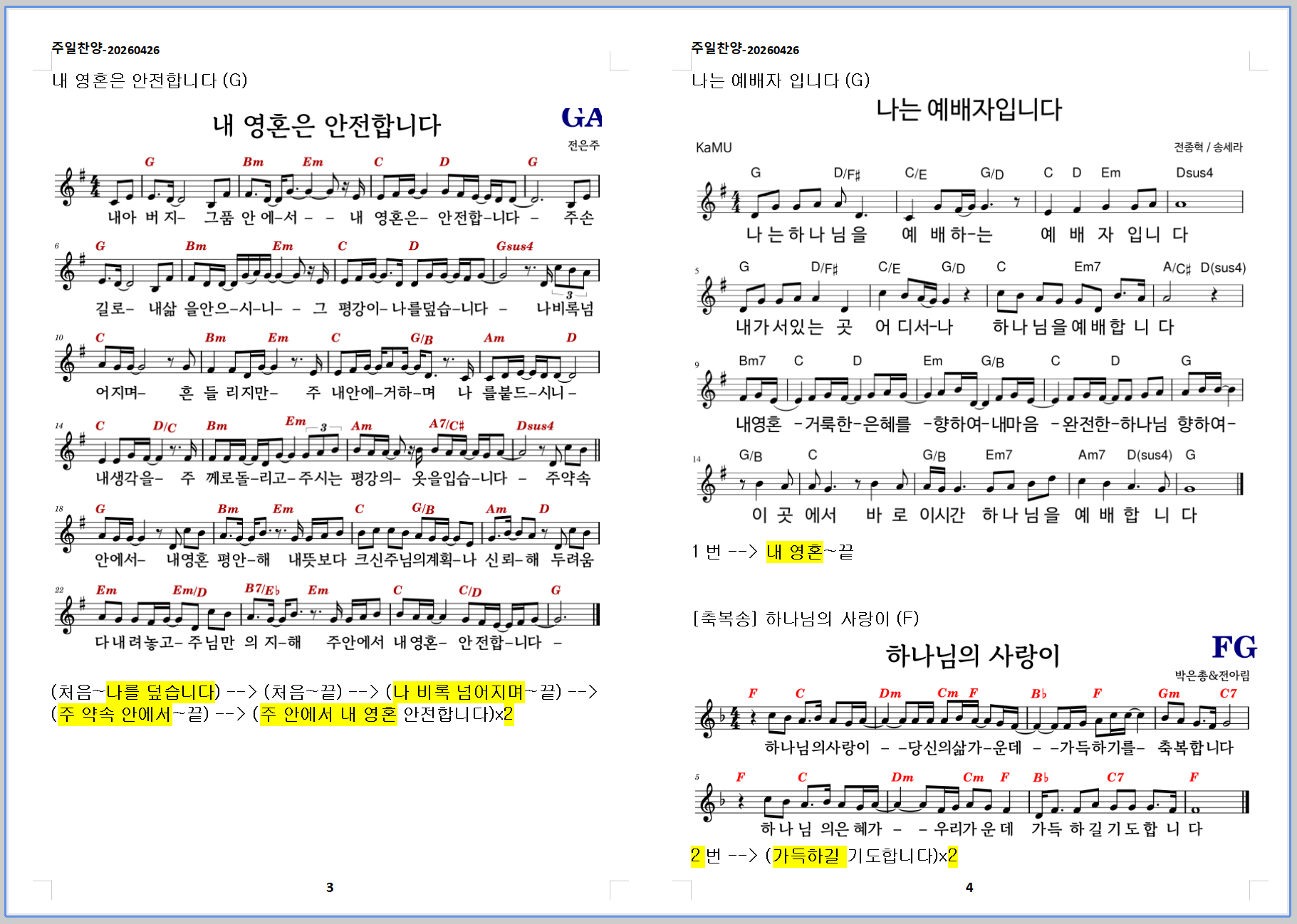 2026. 4. 26. 하늘소망교회 주일예배 찬양 콘티