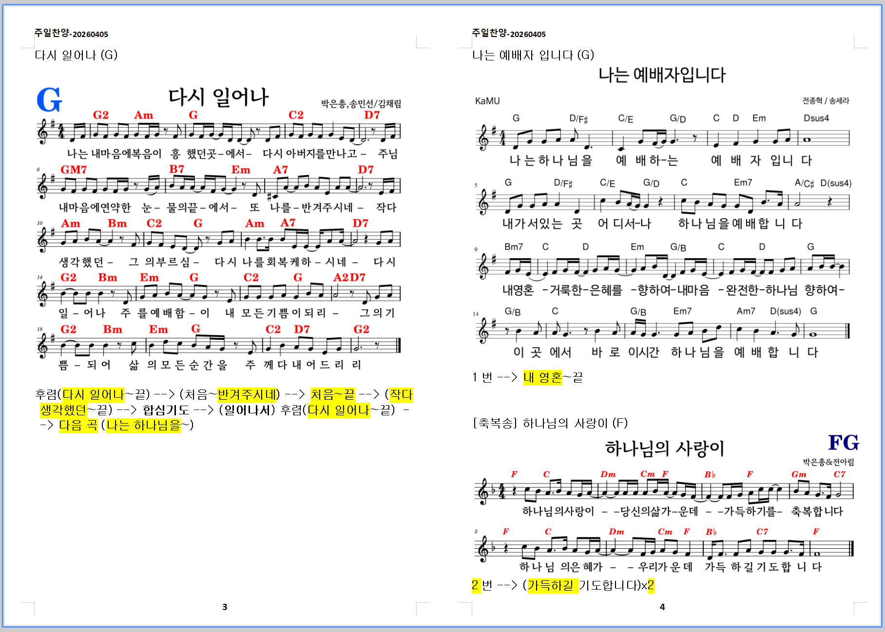 2026. 4. 5. 하늘소망교회 부활절 주일예배 찬양 콘티