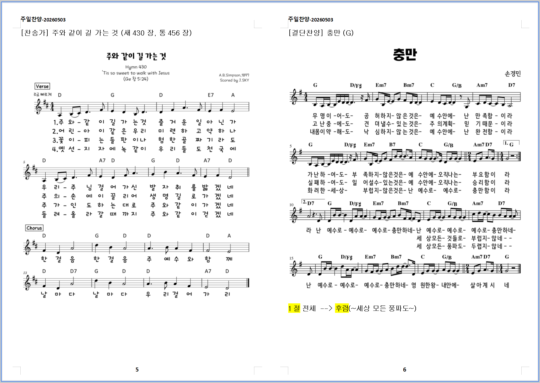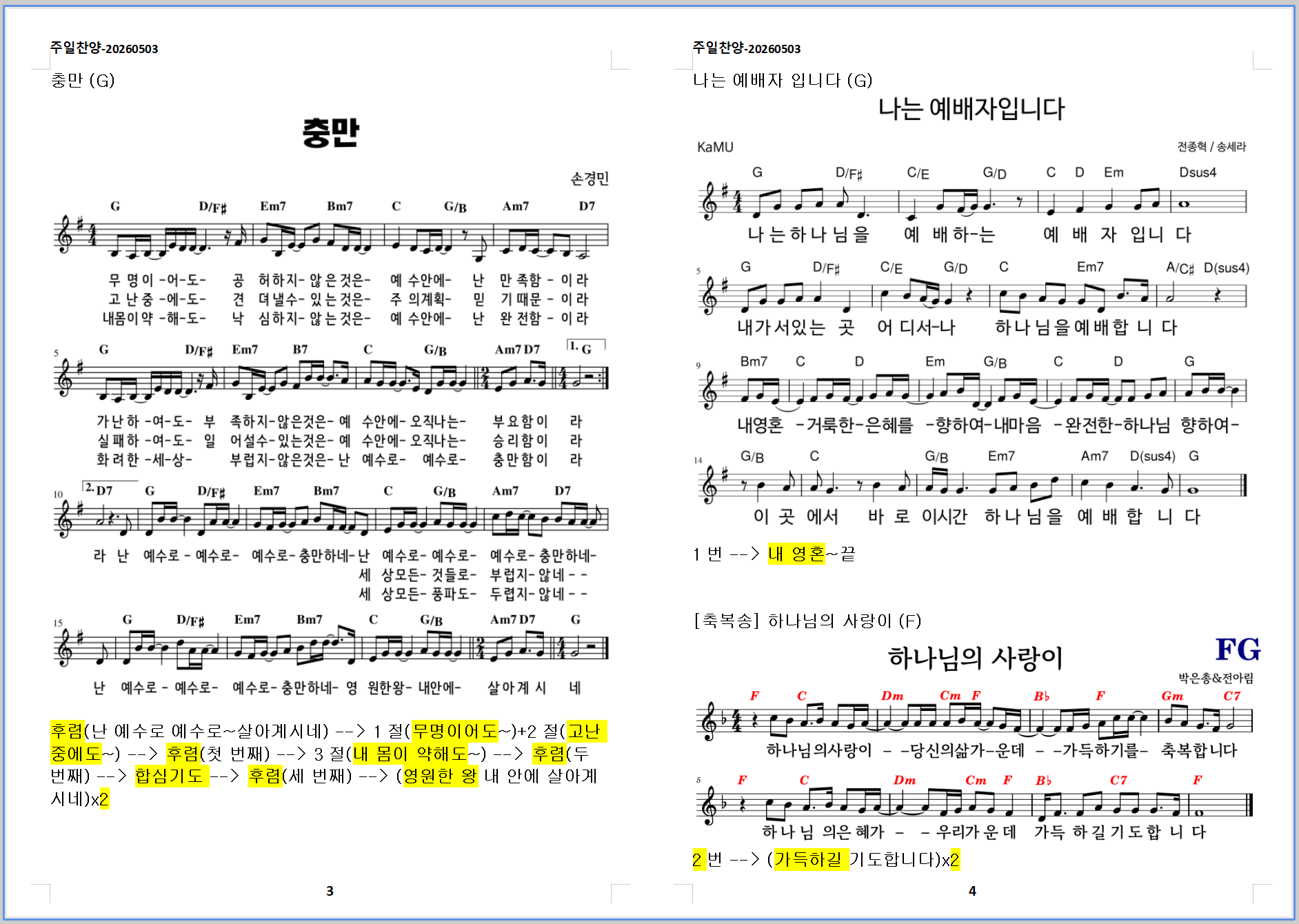 2026. 5. 3. 하늘소망교회 주일예배 찬양 콘티